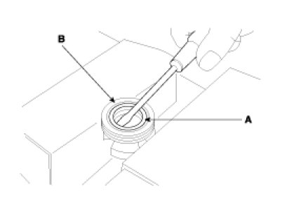 16. Remove the O-ring(A) from the rack bushing (B).
