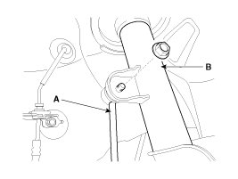 5. Disconnect the stabilizer link(A) from the front strut assembly(B) by loosening the nut.