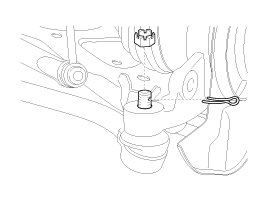 6. Remove the split pin and tie rod end nut from the knuckle.