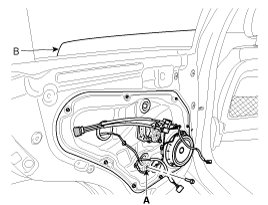 3. Carefully adjust the glass (B) until you can see the bolts, then loosen them. Separate the glass from the glass run and carefully pull the glass out through the window slot.