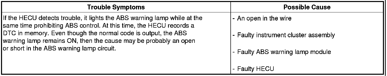 Check the power source for the ABS warning lamp