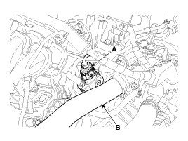 3. Disconnect the engine coolant hose (B).