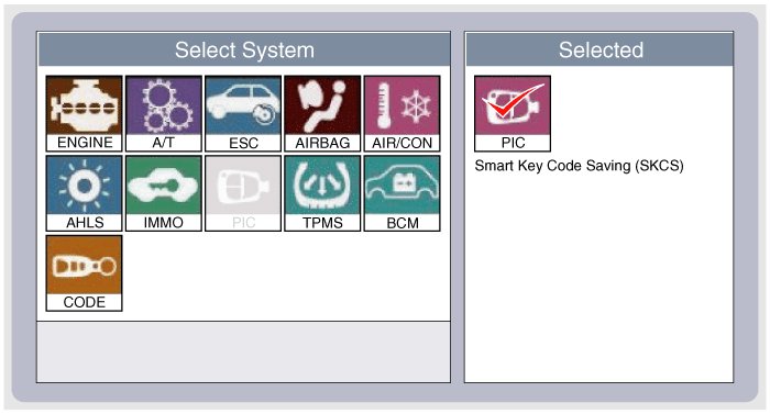 2. Select the vehicle model and then do "Smart key code saving".