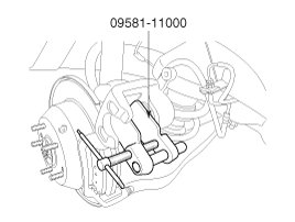 2. Use the SST (09581-11000) to spread the caliper then install the caliper with the brake pads.