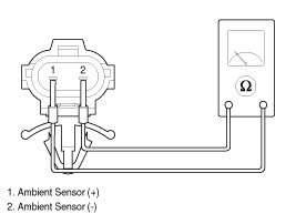 3. Check the resistance of ambient temperature sensor between terminals 1 and 2 whether it is changed by changing of the ambient temperature.