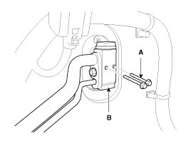 4. Remove the bolts (A) and the expansion valve (B) from the evaporator core.