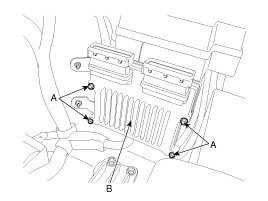 4. Remove the mounting bolts (A), and then remove the TCM (B).