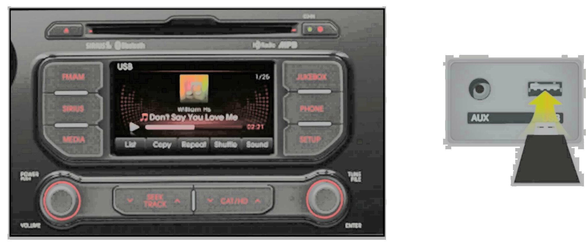 Connect USB flash drive to UVO systems USB socket.