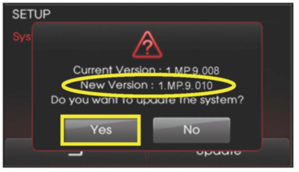 6. Check that "New Version" is correct. If version is correct, then touch "Yes" button on screen.
