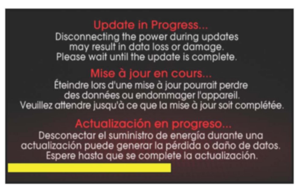 When rebooting, screen will go dark for a period of time, this is normal. System will reboot 2 times to perform the update.