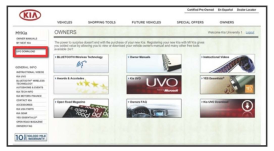 1. Customers can download UVO upgrade software via www.Kia.com.