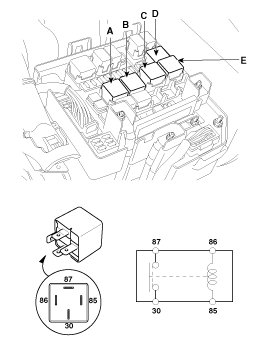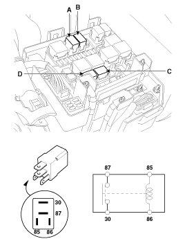 1. There should be continuity between the No.30 and No.87 terminals when power and ground are connected to the No.85 and No.86 terminals.