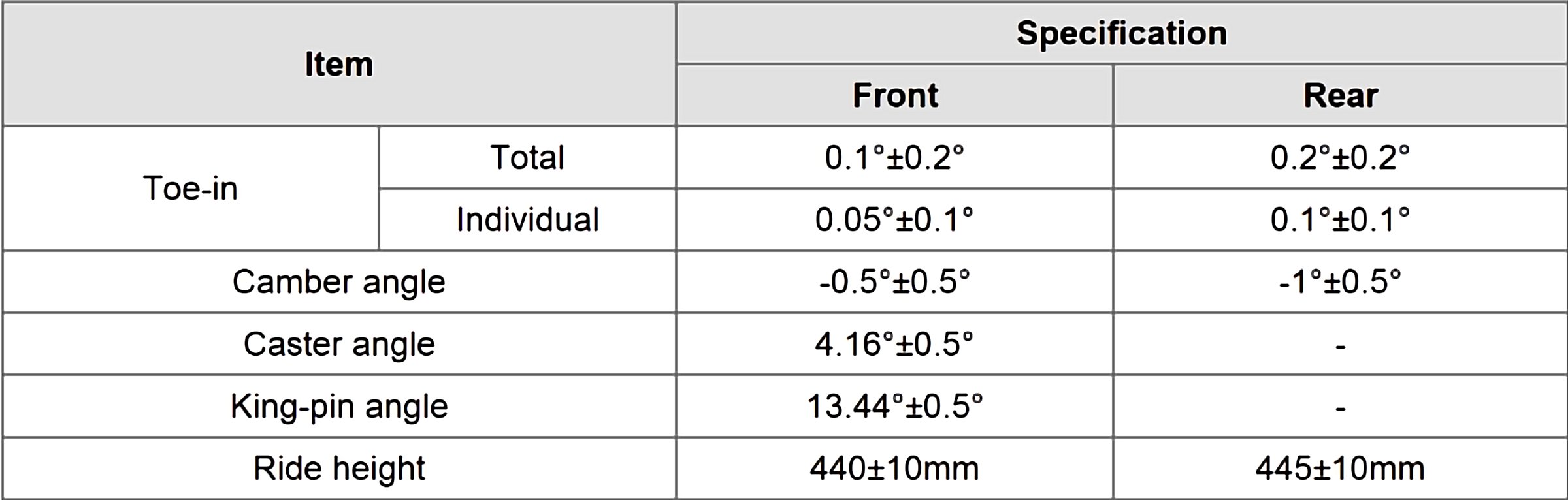 Wheel Alignment Specifications