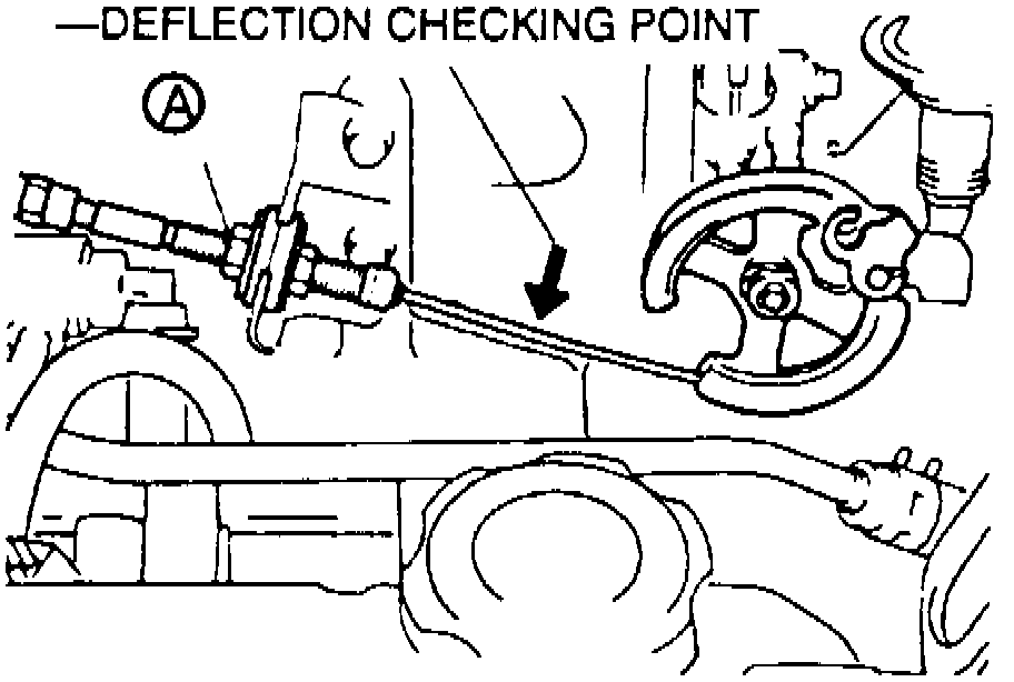 e. Accelerator cable deflection should be 0.04-0.12 inches. If not, adjust by turning nut A, Fig. 11.