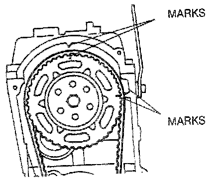 2. Verify that the camshaft pulley marks are aligned with the cylinder head cover mark.
