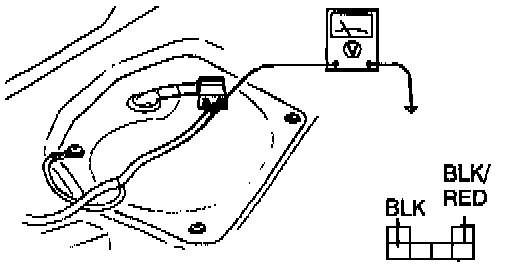 6. If no sound is heard, measure the voltage between the fuel pump connector wire BLK(RED to ground.