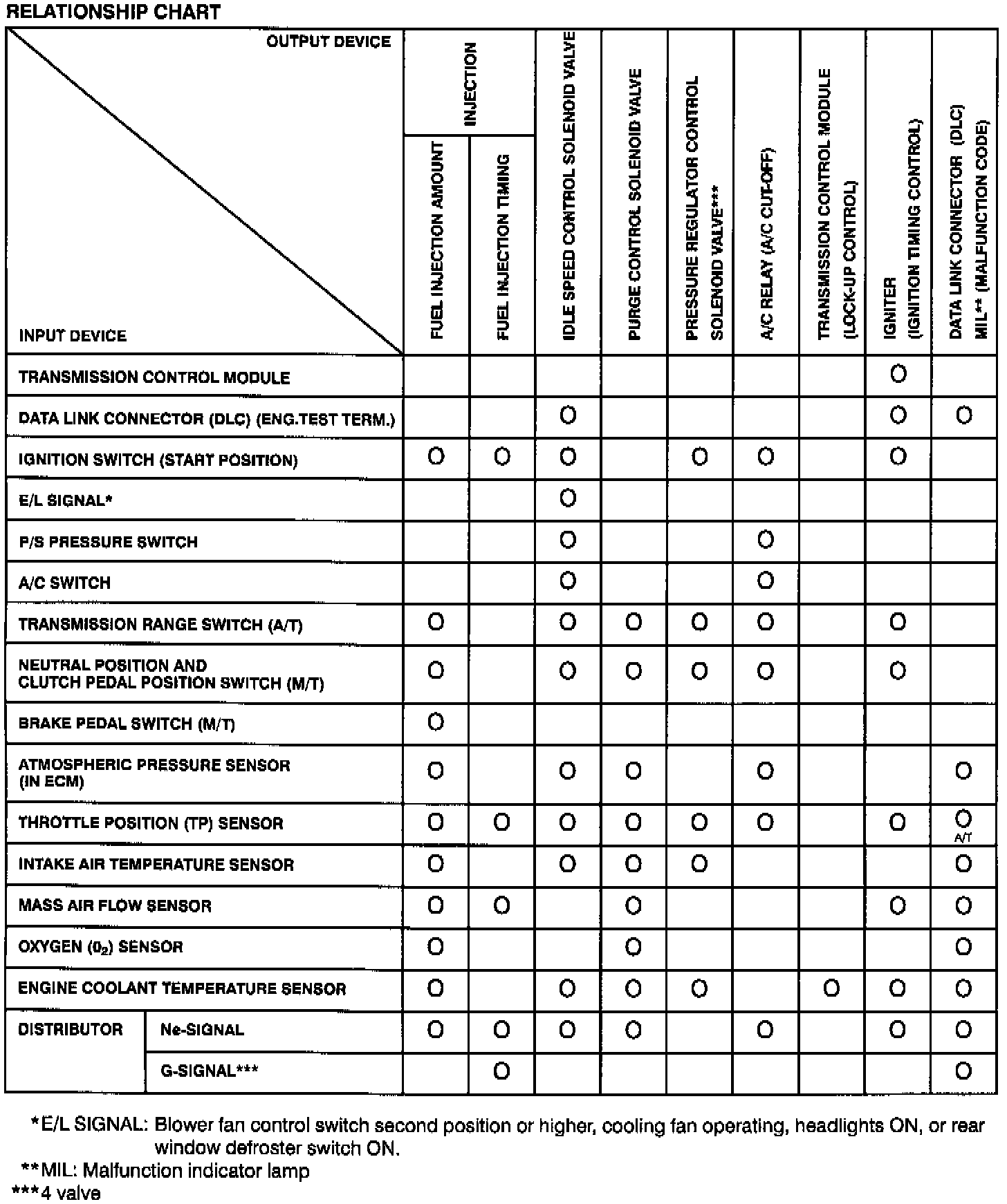 Input - Output Relationship Chart