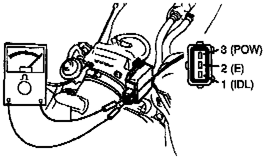 2. Connect an ohmmeter to the throttle position (TP) sensor.