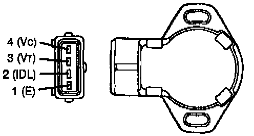 2. Connect an ohmmeter between the throttle position (TP) sensor terminals 1(E) and 2(IDL).