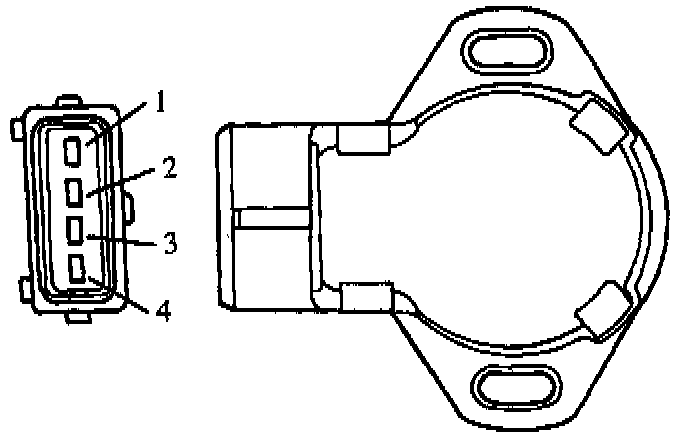 3. Check for continuity between throttle position terminals 1 and 2 using an ohmmeter.