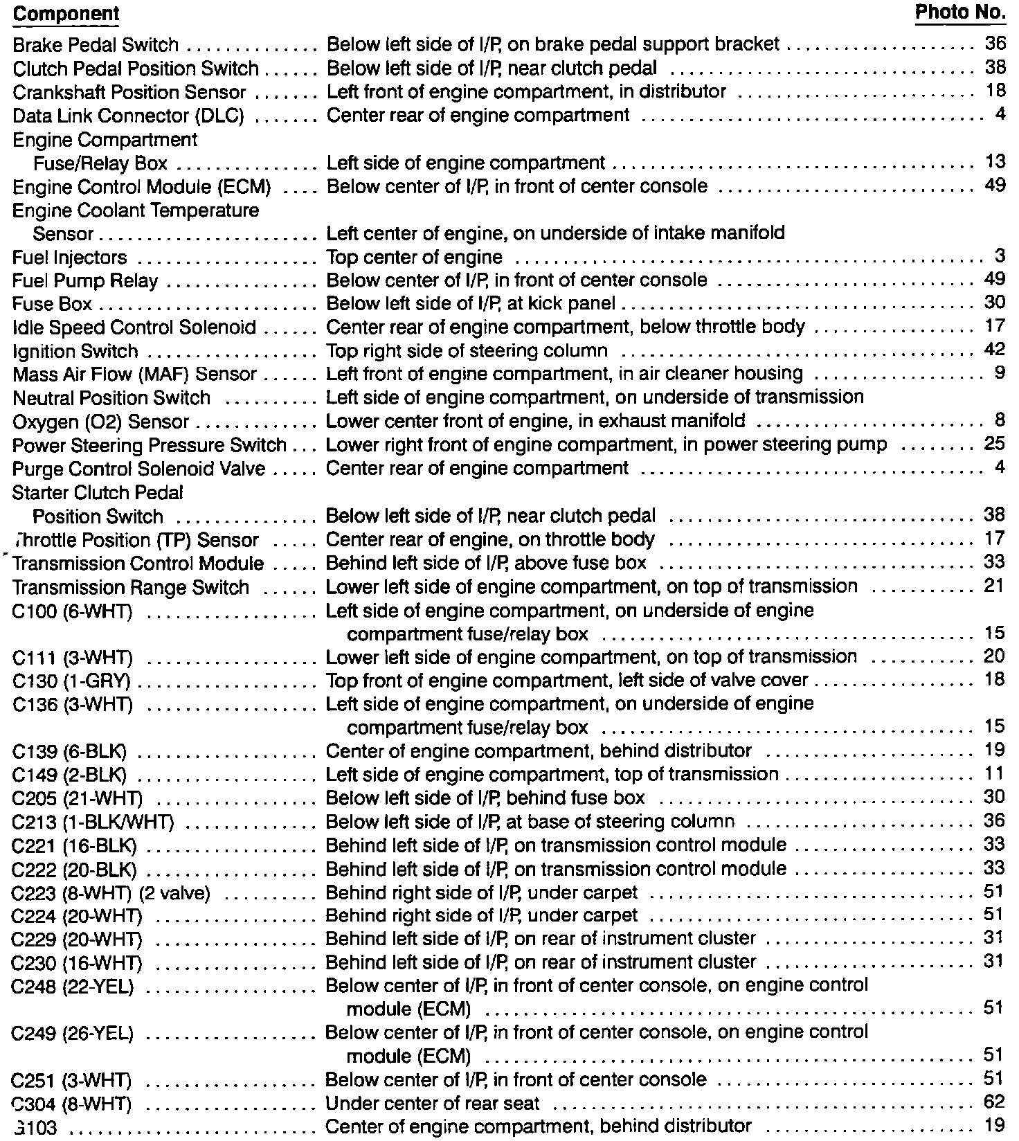 Simultaneous Fuel Injection-Component Location Index (Part 2 Of 2):