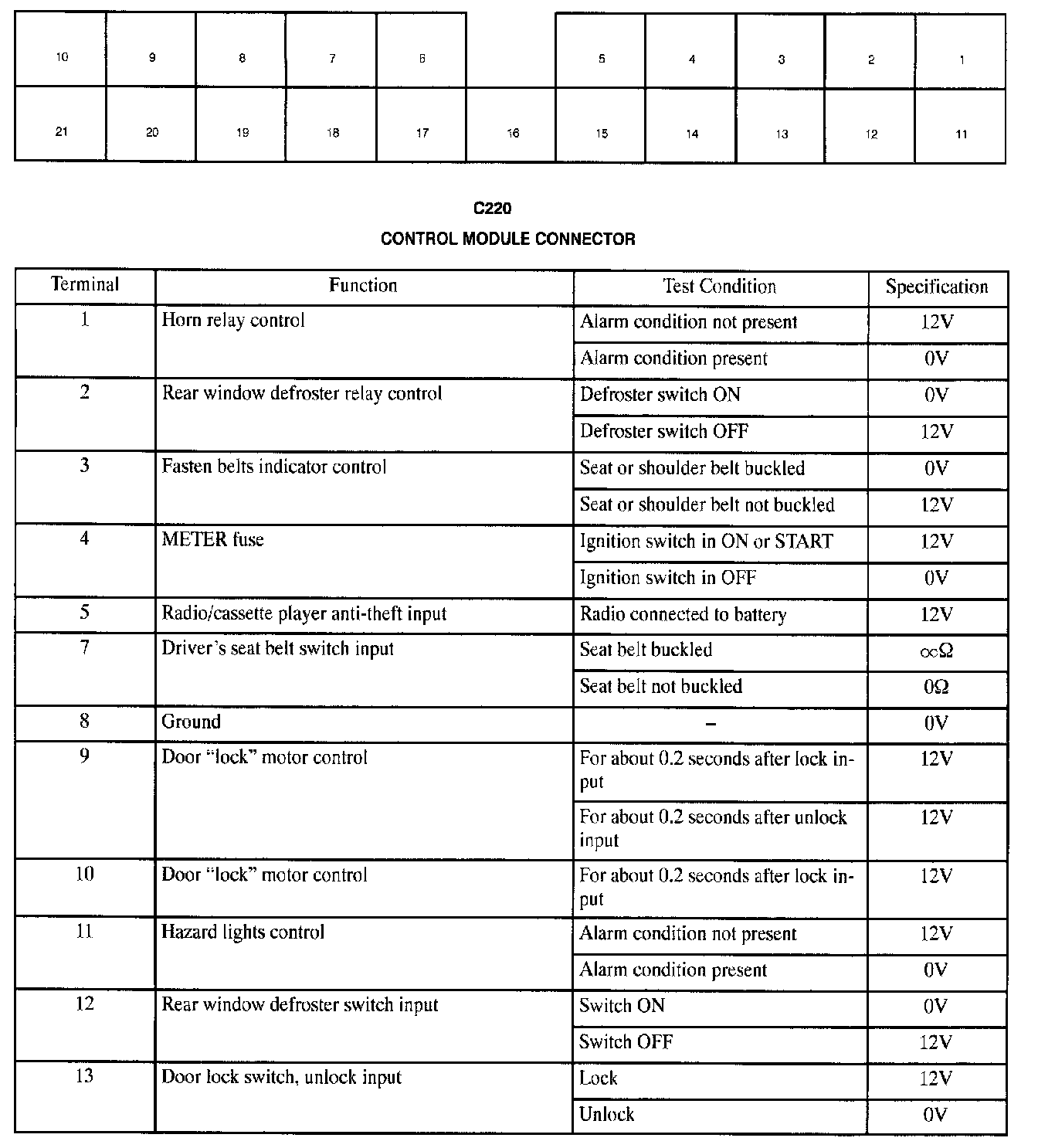 Locate the electronic time and alarm control module connector and check for voltage or continuity with connector connected. Repair or replace as necessary.
