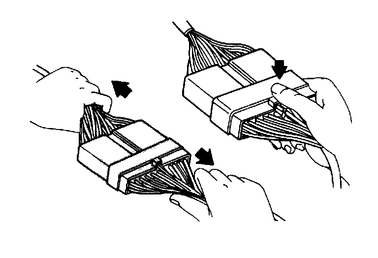 The connector can be disconnected by pressing the lock lever. Do not pull on the wires when disconnecting the connector. Be careful to hold the connector itself when disconnecting it.
