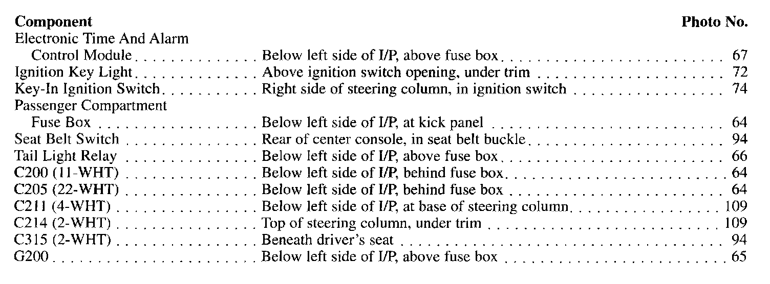 Component Location Index