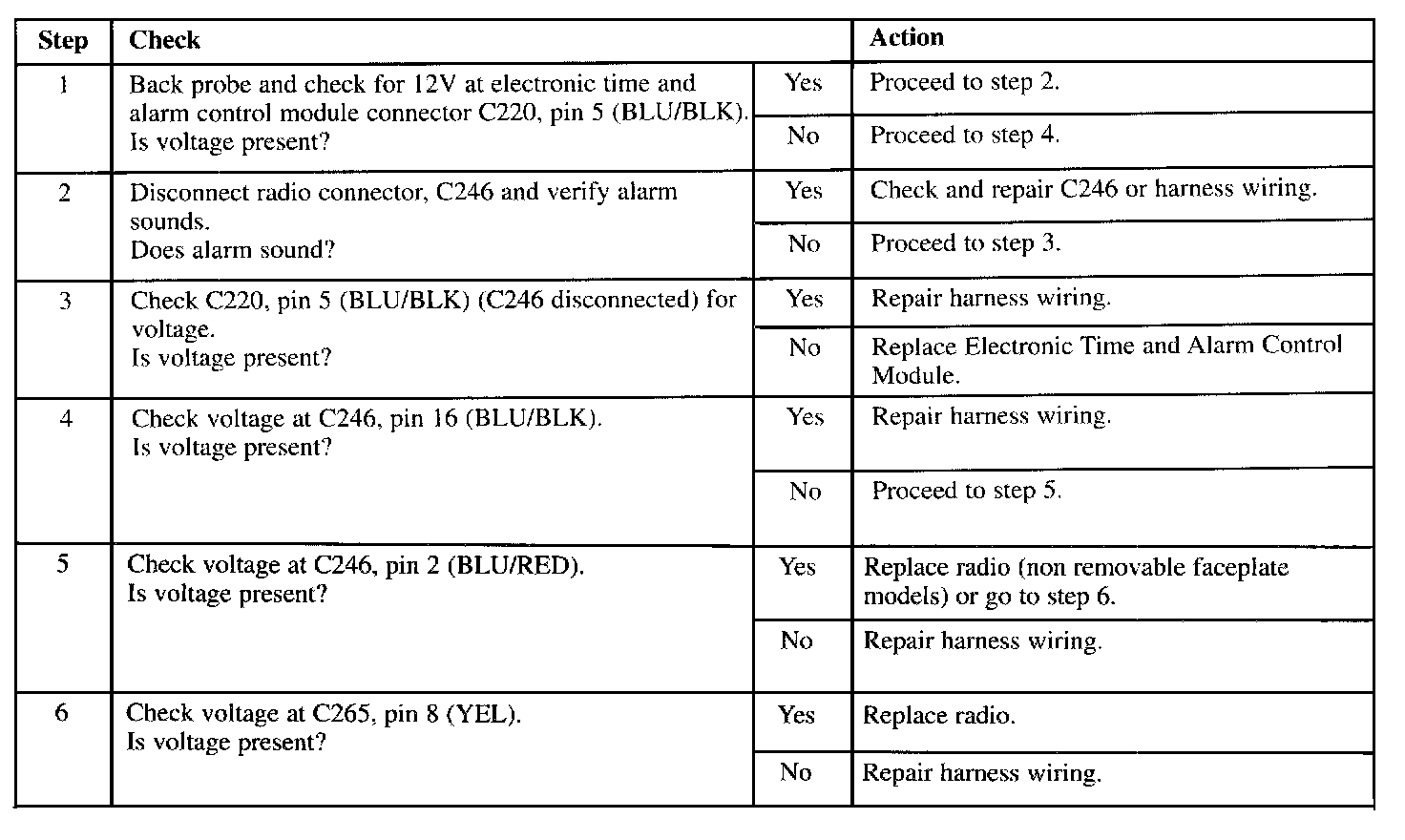 If any fuse is open, locate and repair source of overload. Replace fuse. For removable faceplate models, verify the BLK jumper wire (C291) has been removed and the RED jumper wire (C246) is securely fastened to the rear of the radio.