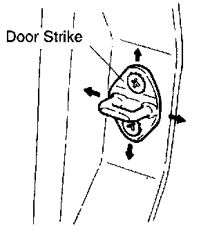2. Check the rear alignment between the door and the body. If there is a problem, adjust the door by moving the door strike horizontally.
