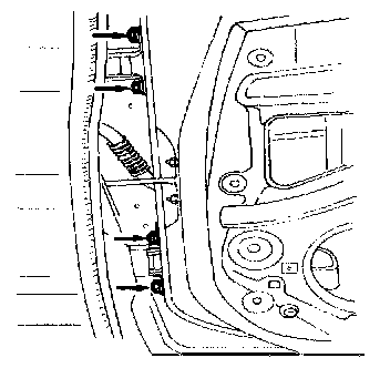 2. To adjust the door to body alignment, loosen the door hinge installation bolts and make the adjustment.