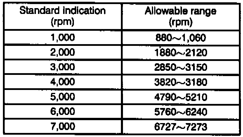 2. If the vehicle's tachometer does not indicate within the allowable error range, replace it.