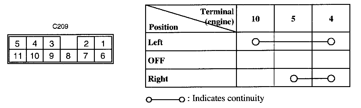At the switch, check for continuity between terminals, as indicated.