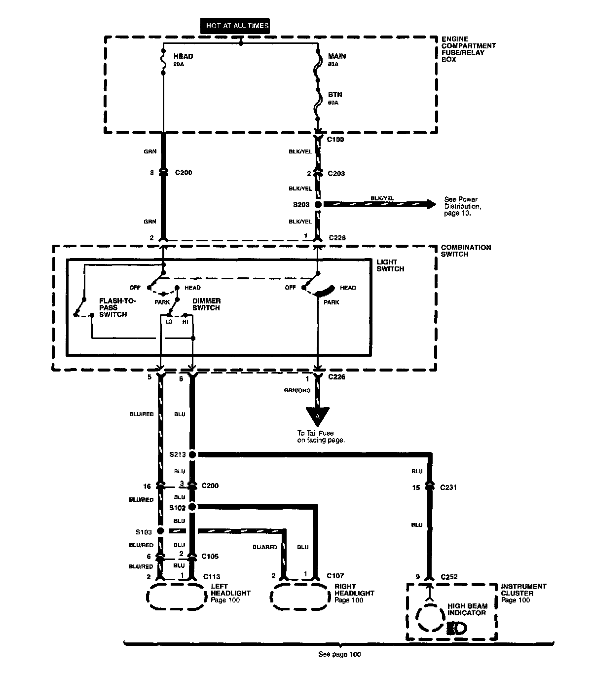 The Light Switch Details schematic shows all the wiring between the light switch and the components connected to the output of the light switch. The Light Switch Details schematic is extremely helpful in locating a short circuit on the output side of the light switch.