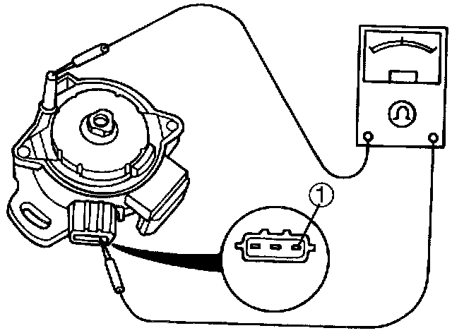 2. Using an ohmmeter, check resistance of primary coil at connector terminals 1 and 2 on the distributor.