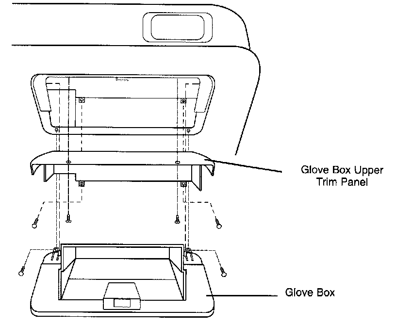 1. Remove the two screws at the bottom corners of the glove box and remove the glove box.