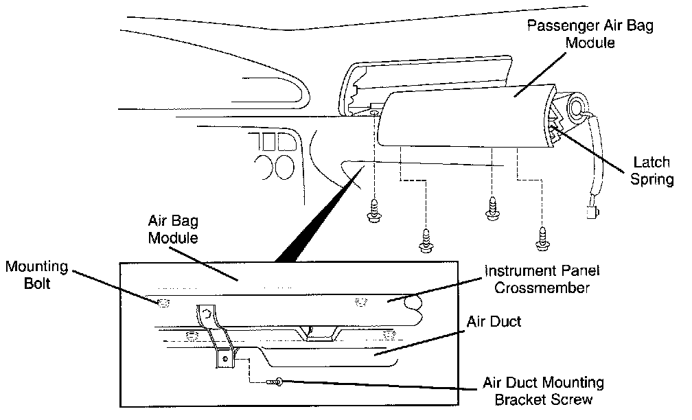 1. Install the passenger air bag module and verify that the side latch engages properly.