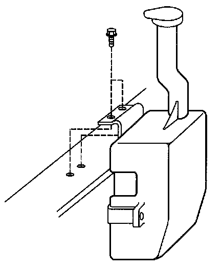 2. Remove two bolts and the windshield washer fluid reservoir.