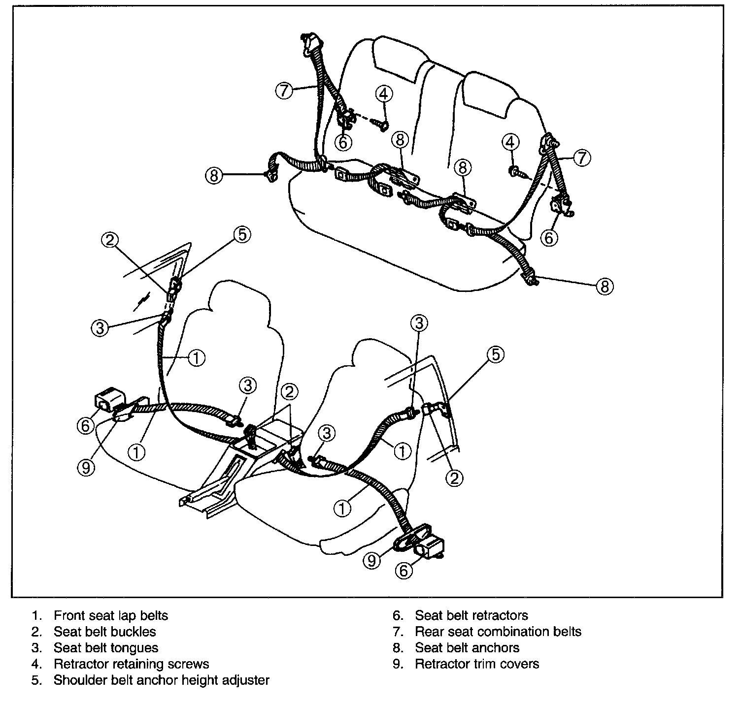 1. Check that the belts pull out of the retractors smoothly, and that it does not bind when worn.