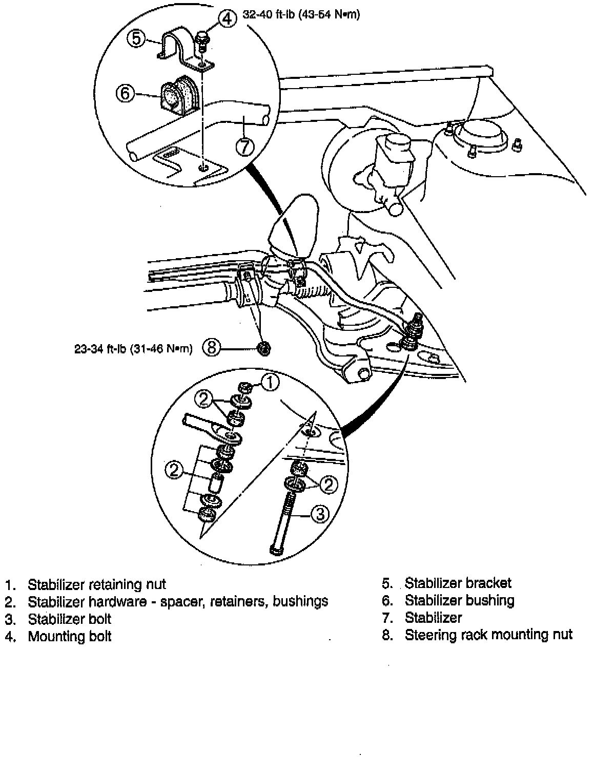 3. Lower the crossmember enough to allow the stabilizer to be pulled out from behind the crossmember.
