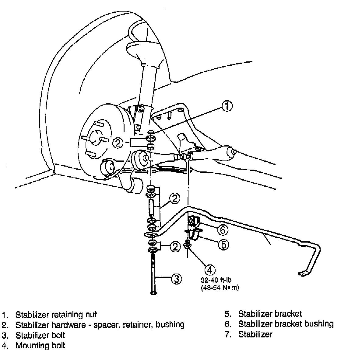 NOTICE: Tighten the stabilizer bracket bolts to the specified torque before lowering the vehicle (unloaded condition).