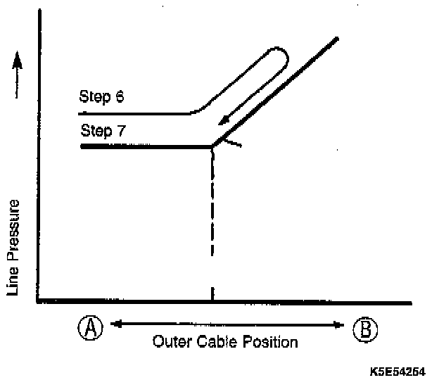 7. Push the cable in the "A" direction of the arrow until the line pressure decreases to the adjustment pressure.