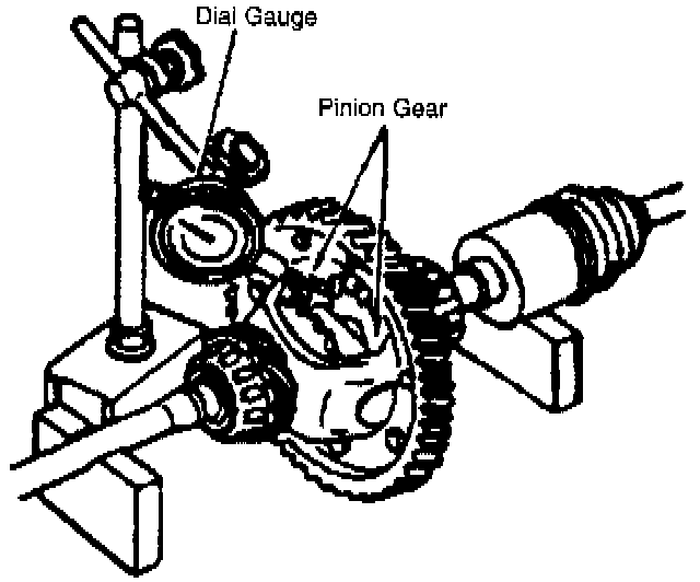 1. Before disassembly, measure the backlash of the side gears and pinion gears. If not within specification. replace the differential assembly.