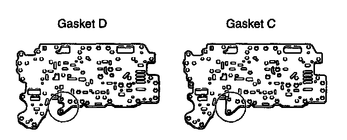 NOTICE: Gasket C and gasket D are not interchangeable. They are identified by their shape in the area designated in the illustration.