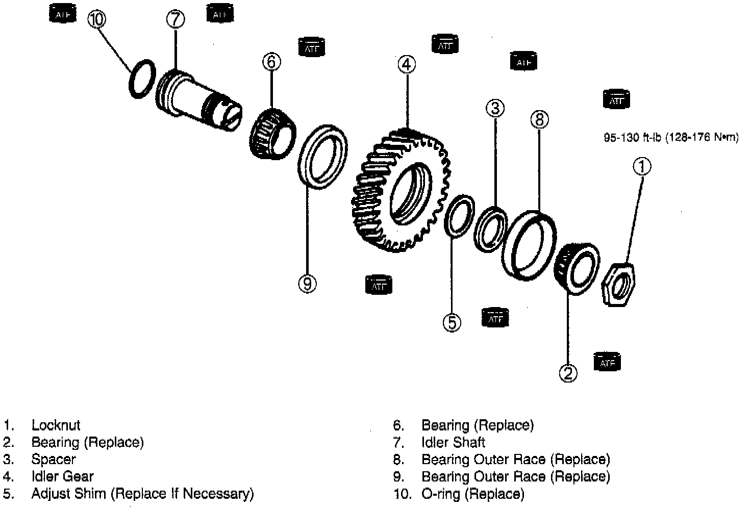Tightening torque: 95 - 130 ft. lbs. (128 - 176 Nm)