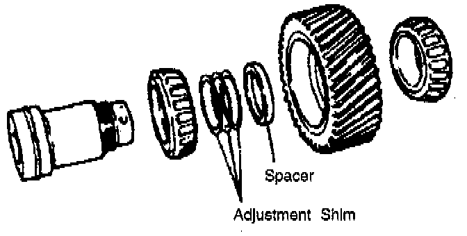5. If the specified preload cannot be obtained within the specified tightening torque, adjust by selecting the proper adjustment shims.