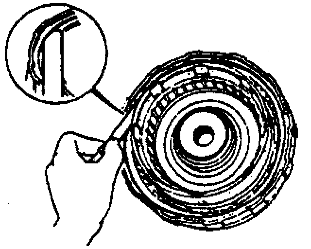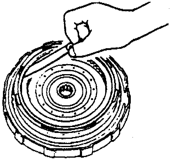 1. Remove the snap ring, retaining plate, drive plates, driven plates, and dished plate of the forward clutch.
