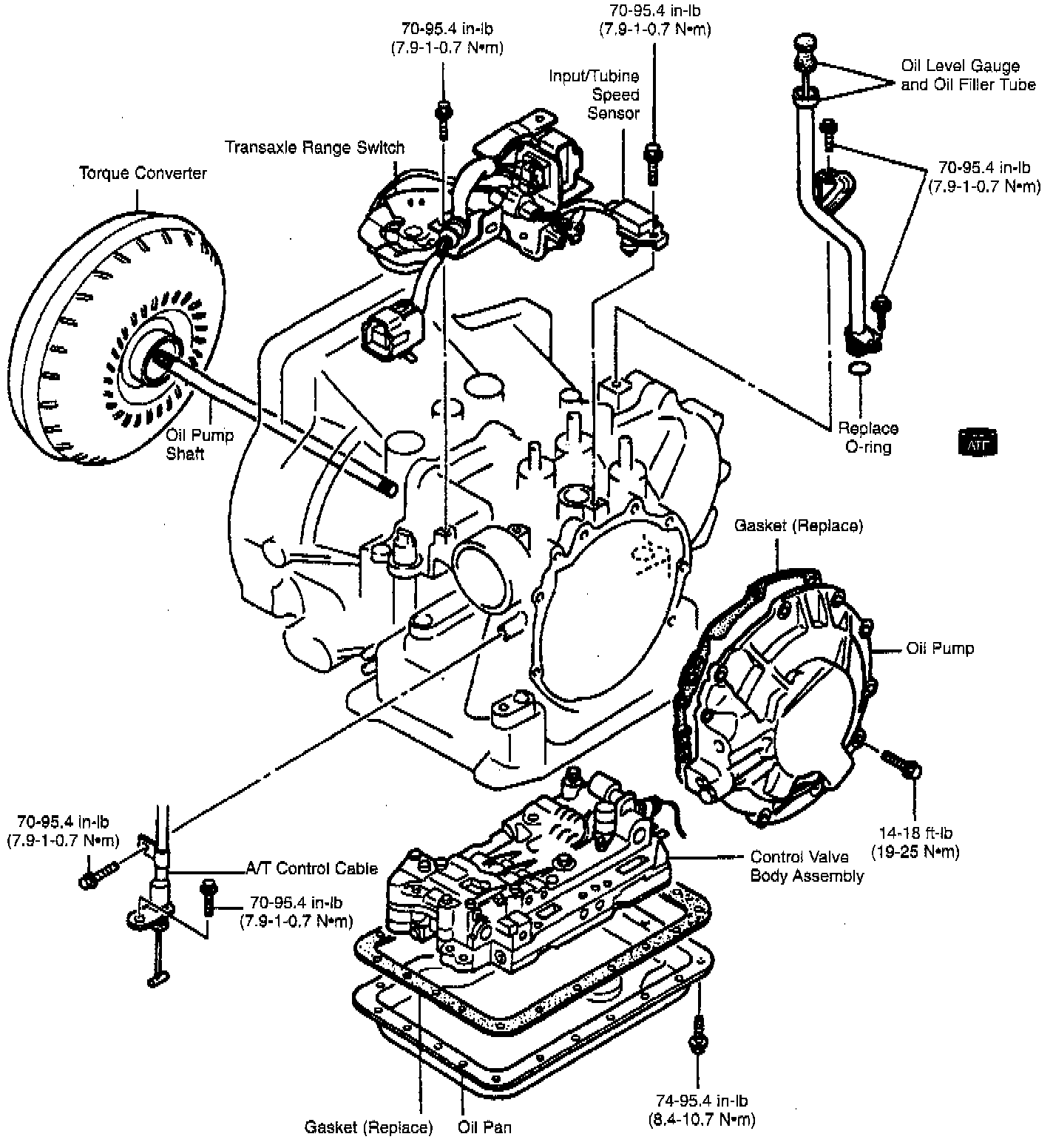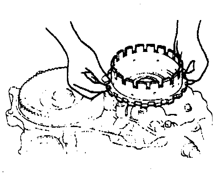 - Hold the torque converter in an upright position when filling it with ATF. Do not allow the fluid to overflow.