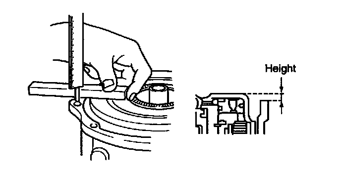 NOTICE: Measure the height difference between the reverse/forward drum and the transaxle case.