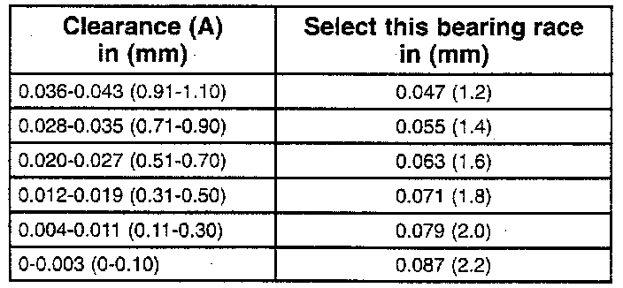 C. Set the thickest bearing race 0.087 inch (2.2 mm) onto the oil pump.